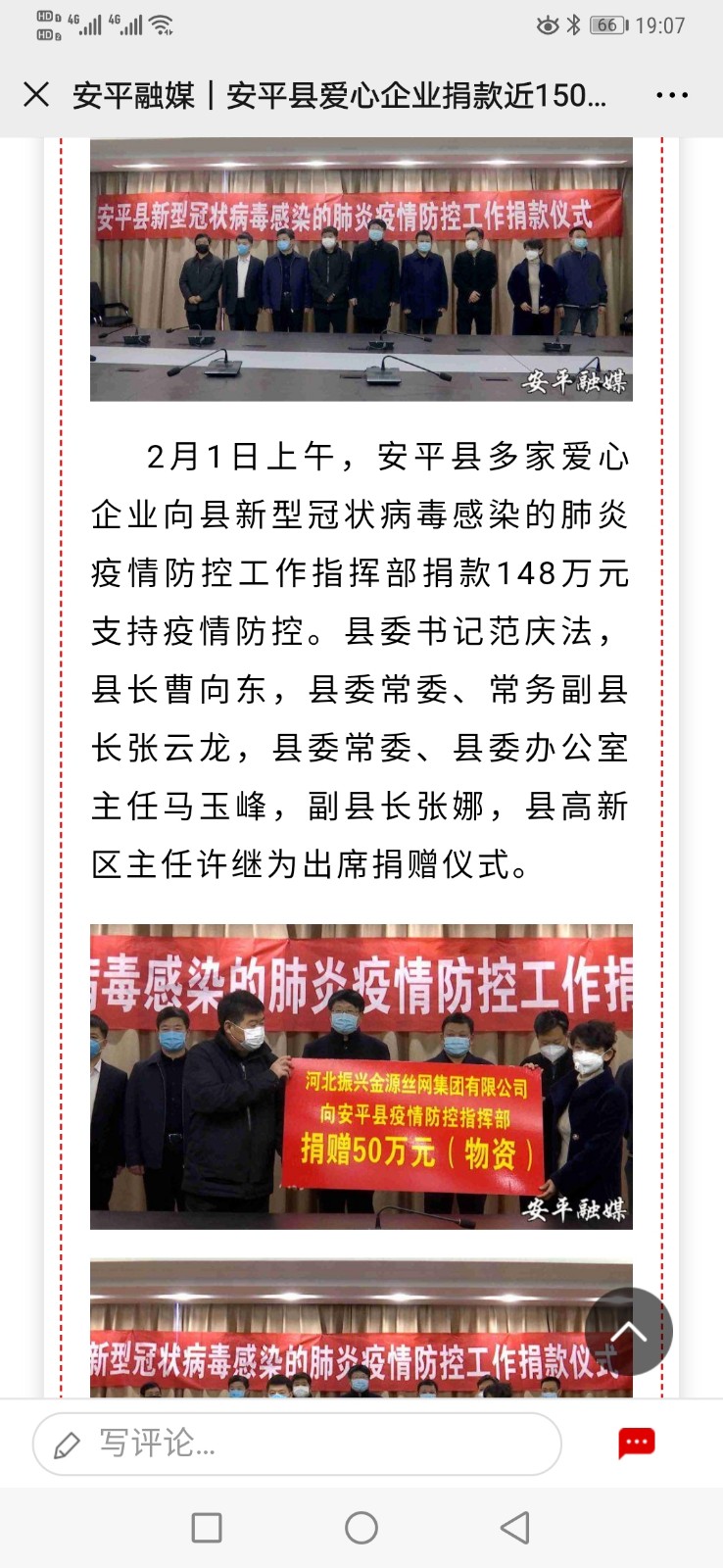 河北振興金源絲網(wǎng)集團(tuán)為防疫工作貢獻(xiàn)自己的力量。